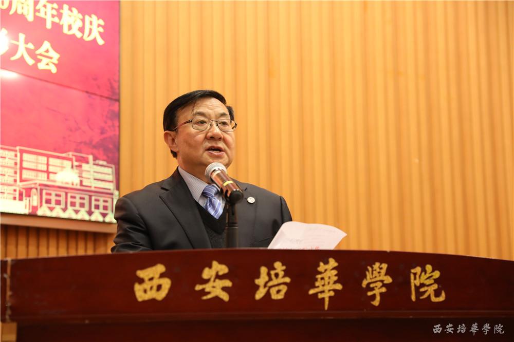 李映方校长宣读《西安培华学院关于表彰建校90周年校庆活动先进集体和先进个人的通报》