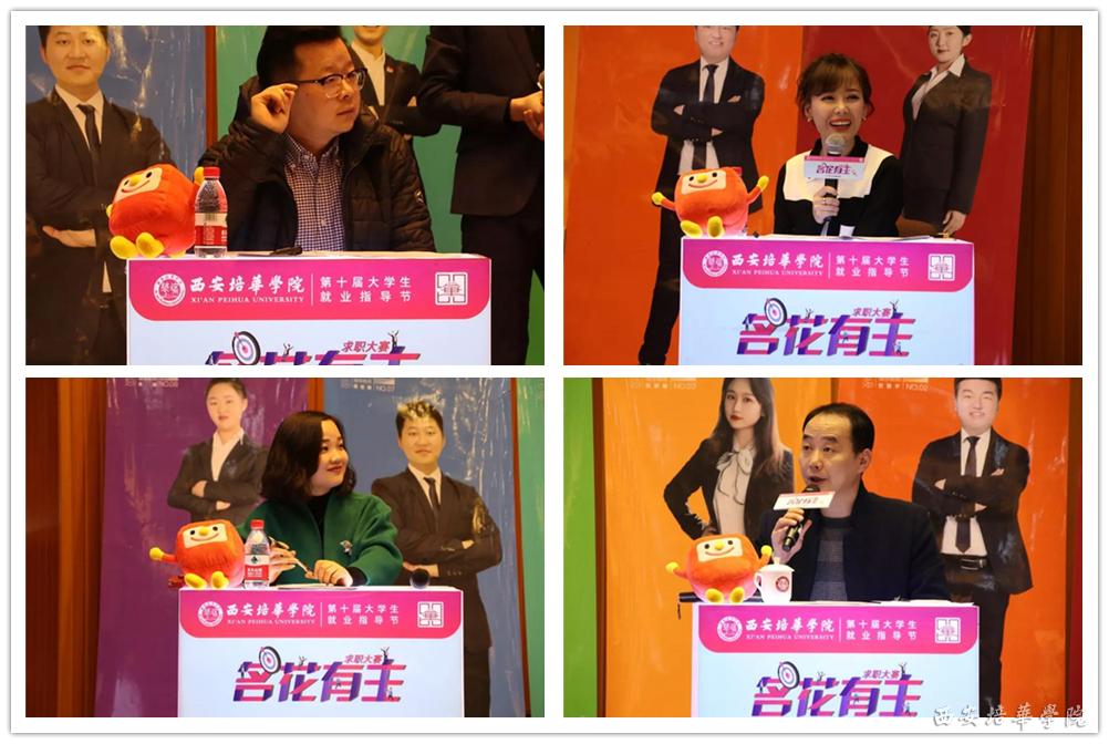 此次比赛邀请了58同城西安站行政人事经理孙伟、京东集团西北区域分公司招聘与组织发展经理张丹竹、陕西青贝文化发展有限公司总经理李娜、陕西广播电视台都市青春频道《都市快报》主持人、陕西广播电视台都市青春频道主播部副主任徐茜、陕西成长地产控股集团有限公司副总裁麻红卫、西安小白兔口腔医疗股份有限公司人力资源部经理王婷等6家用人单位相关负责人担任大赛评委。西安培华学院副校长、党委副书记姚文静,西安市人才服务中心毕业生就业指导部就业指导科科长张志诚及各院(部)中心的领导们、14家企业代表大众评审和学生代表400余人观看了精彩的决赛。