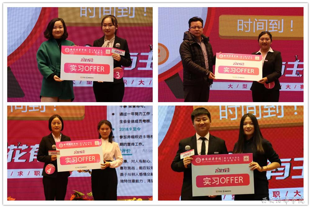 在总决赛现场,进入决赛的8名选手,从2349名参赛选手中脱颖而出,通过VCR展示、自我介绍、评委现场提问点评三个环节,来自传媒学院的卢立杰荣获本次大赛一等奖,医学院孙天文和智能科学与信息工程学院刘鑫亮荣获二等奖,传媒学院宋佳倩、医学院白洁、人文与国际教育学院高善善、智能科学与信息工程学院王楠、医学院沙小婷荣获三等奖。同学们以其扎实的理论知识,丰富的社会实践经验,良好的精神风貌博得了用人单位的青睐,获得企业颁发的实习就业录用函。