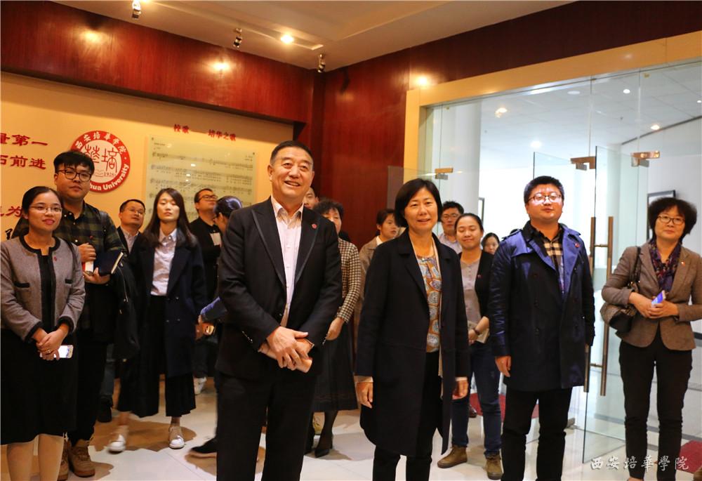来宾一行依次参观了培华校史馆、学生潜能发展中心、学生服务中心、体育中心、云财务中心等场馆和实验实训设施,详细了解了我校校园环境、文化设施、共青团工作、工会工作等情况。夏雨副校长介绍了上海建桥学院的基本情况、学生工作思路和工会建设情况。夏雨副校长对我校近年来取得的成就表示高度赞赏和肯定,并对我校“一切为了学生”“服务学生终身发展”的培养理念给予高度评价。