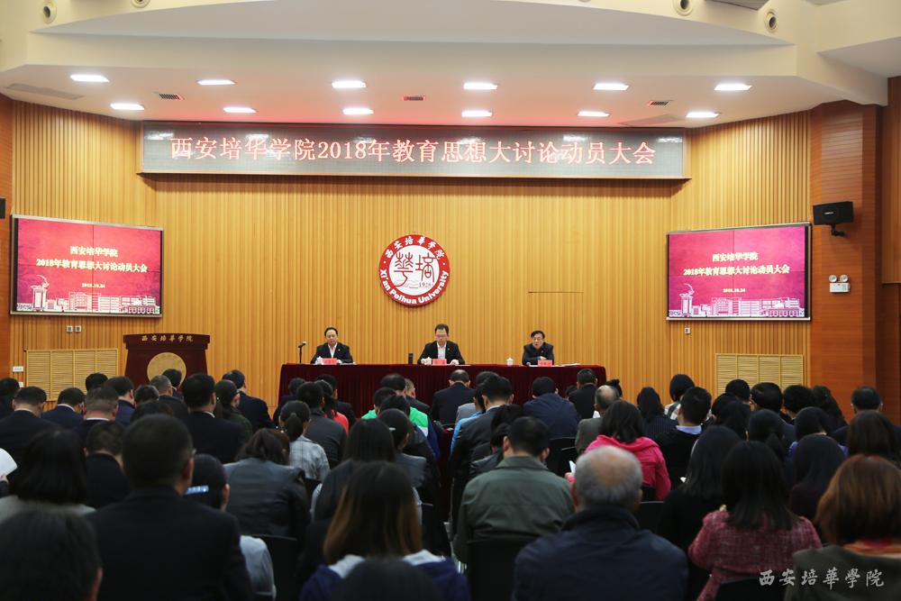 10月24日下午,我校在明德楼报告厅召开了教育教学思想大讨论活动动员会,全体校领导、校学术委员会委员、各二级学院党政干部、系主任、教学干事、学生干事、行政部门主管以上人员参加会议。西安培华学院党委书记胡俊生主持会议。