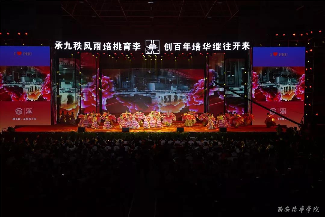 10月21日晚,“薪火90载 同心创一流”西安培华学院90华诞文艺晚会盛大开幕,全国人大代表、西安广播台主任播音员孙维,陕西广播电视台主持人徐杰、我校2012届校友,陕西人民广播电台节目主持人高素,我校2013届校友、山西广播电视台节目主持人晨亮,我校播音主持艺术专业教师屈阳、学生胡永泰组成超强阵容主持团。我校全体校领导与来自祖国各地的各届校友,在校师生共三千余人欢聚一堂共庆培华90华诞。晚会还进行了现场直播,约12万人次通过网络观看晚会,为培华送上生日祝福。