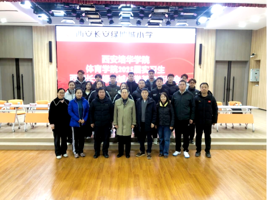 校领导与西安长安绿地城小学的领导、带教老师及实习学生合影