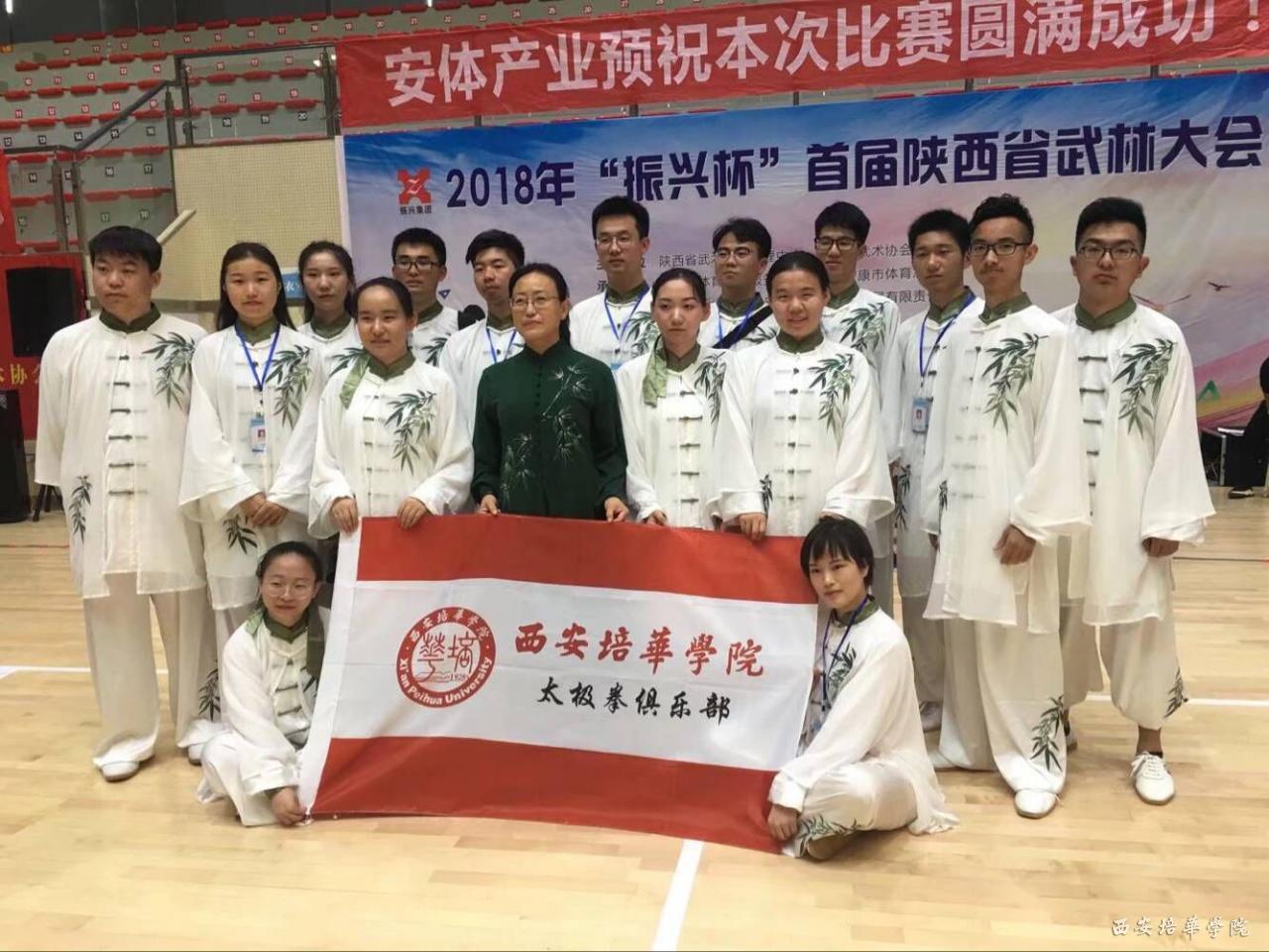 6月22日--24日,2018年“振兴杯”首届陕西省武林大会在安康市金州体育馆举行,来自省内98支代表队,900多名运动员参加本次比赛,我校由太极拳俱乐部主任黄慧老师带领16名运动员组成代表队,参加本次盛会。经过激烈的角逐,我校太极拳代表队共获得7金、11银、13铜,集体套路三等奖的骄人成绩。