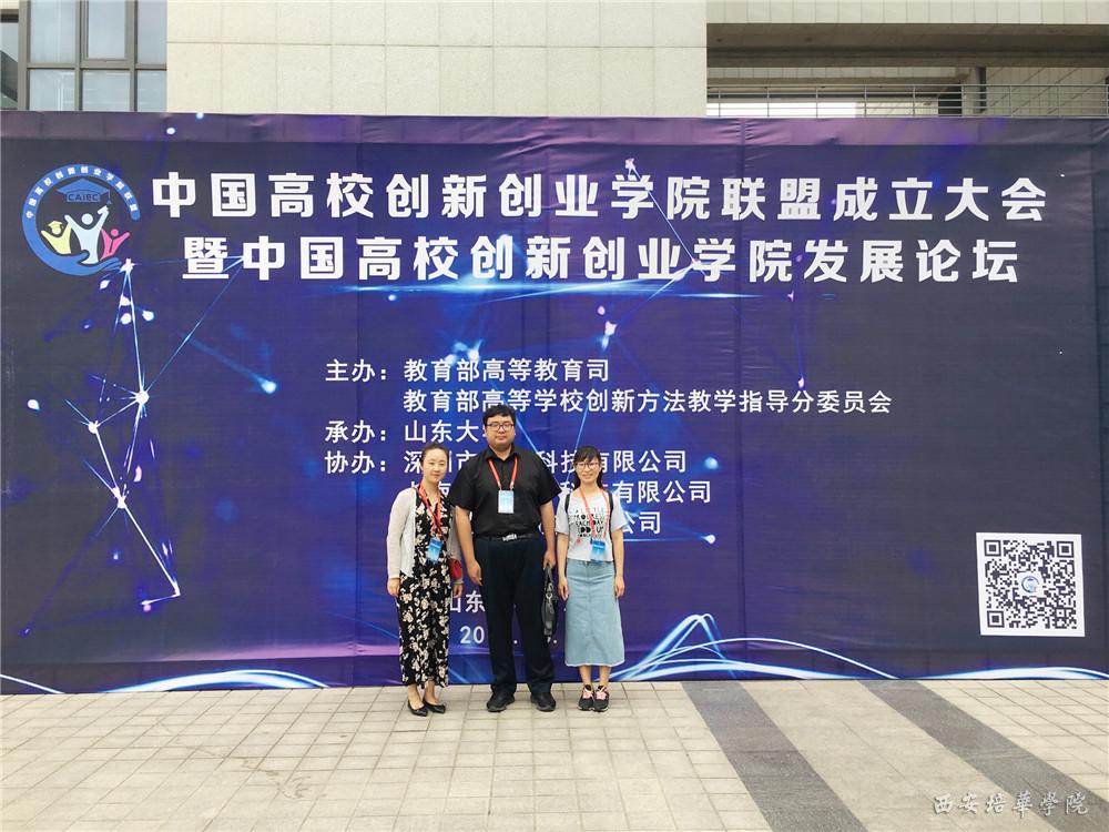6月2日,由教育部高等教育司,教育部高等学校创新方法教学指导分委员会主办,山东大学承办的中国高校创新创业学院联盟成立大会暨中国高校创新创业学院发展论坛在山东济南举行,我校产学研协同创新中心薛舒凡老师、传媒学院王瑞老师、医学院黑一宏老师代表学校参加了本次成立大会并参观山东大学众创空间。