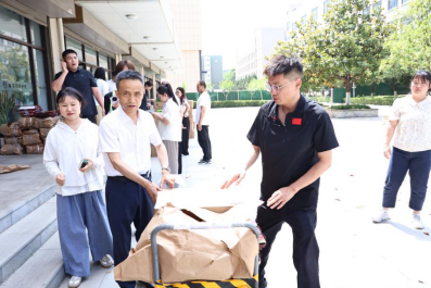 慰问大礼包准备了绿豆糕、杂粮香粽和咸鸭蛋等传统端午美食。各基层分会信息员和教职工代表有序领取、智能科学与工程学院学生志愿者积极配合,将近1600份福利发放到教职工手中。