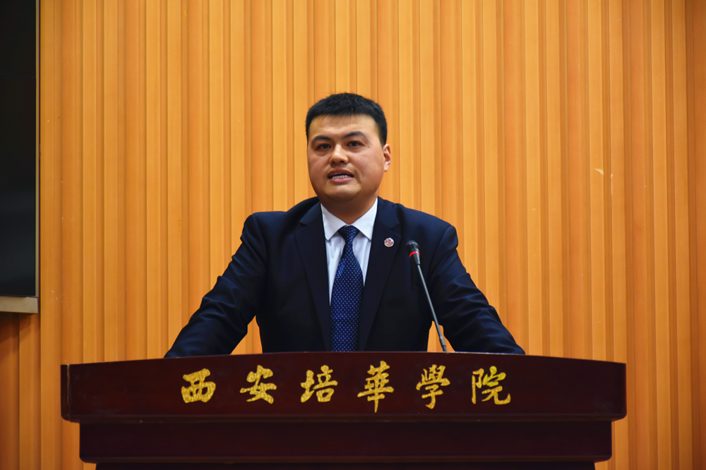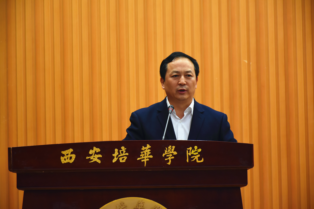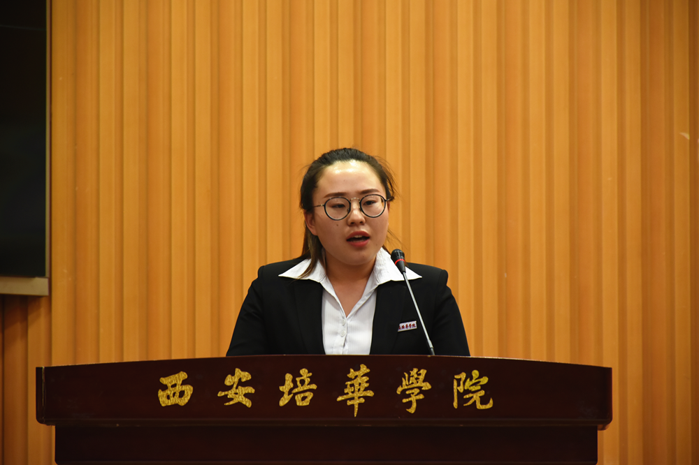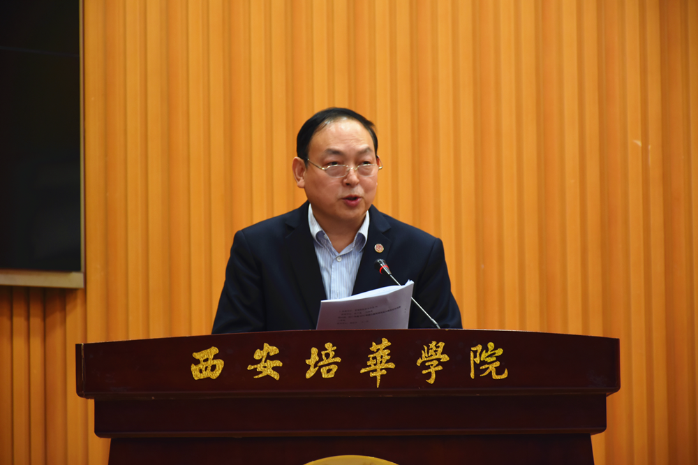 于国亮副校长宣读《西安培华学院关于表彰2017年度学科竞赛获奖学生的通报》