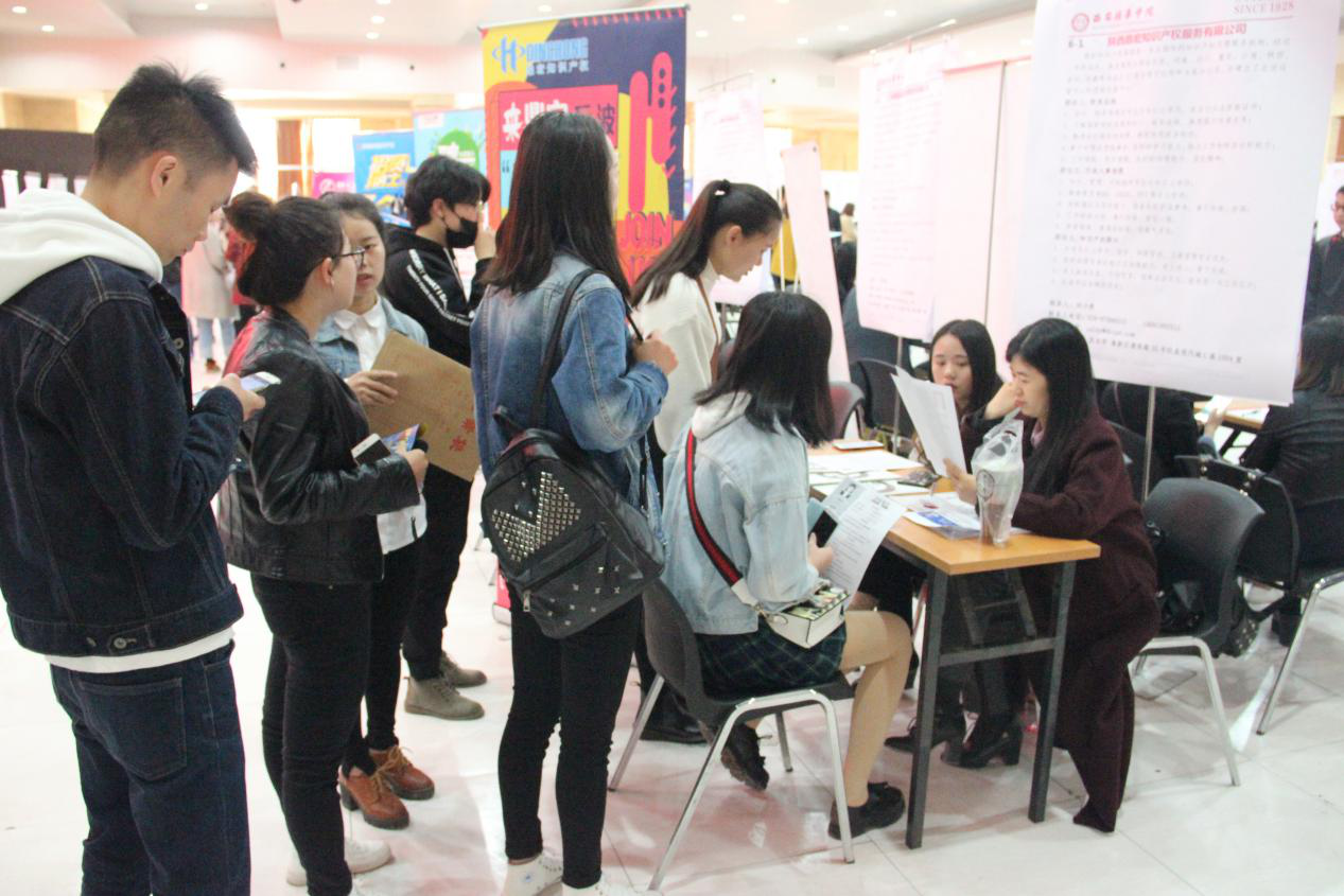 招生与就业指导中心鲍伟主任、王琳副主任来到招聘会现场,并与用人单位进行了详细的沟通,同时,由于本次招聘会参会企业多、岗位质量好,还吸引了西北政法大学、西安财经学院、西安工程大学、西安外国语大学等省内兄弟院校的学生前来参加。继本次招聘会之后,学校还将在本学期举办各种多场不同类型的招聘会,并同步开展系列就业创业指导活动,助力2018届毕业生顺利就业。