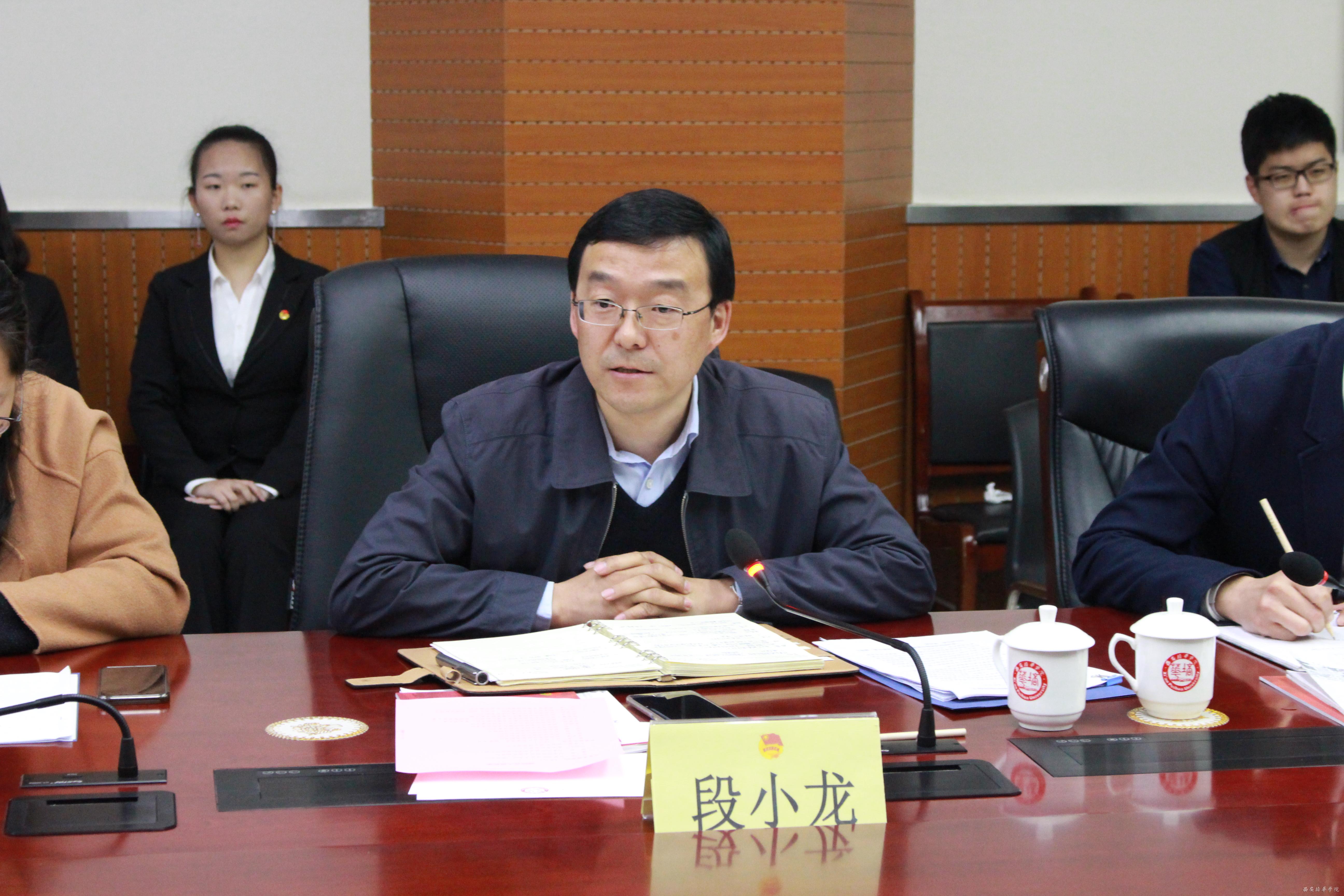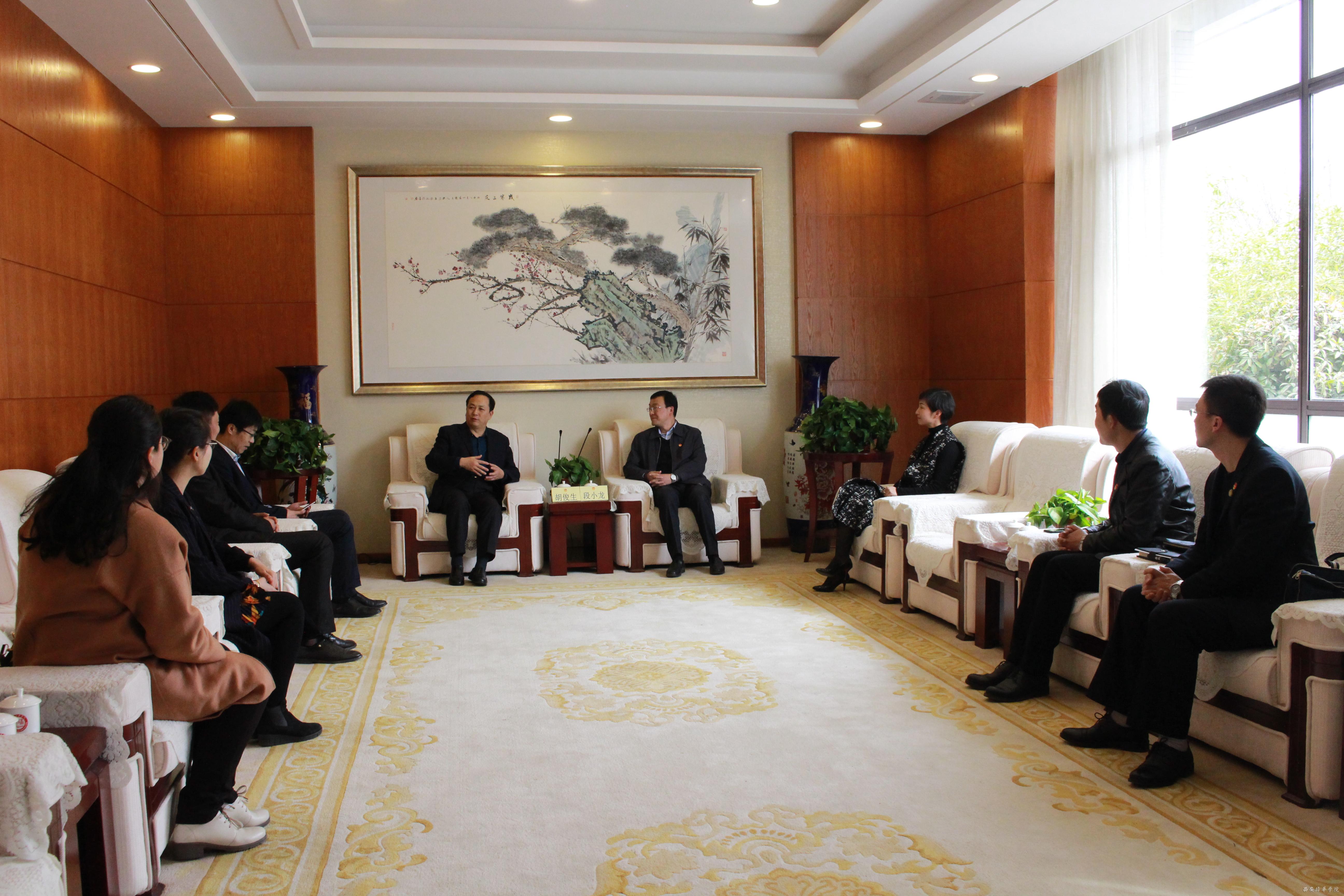 3月16日下午,共青团陕西省委书记、党组书记段小龙,团省委学校部部长潘磊、学校部干部樊林,西京学院团委书记马扬利,西安思源学院团委书记王海涛一行来我校调研共青团工作。校党委书记胡俊生,校党委副书记、副校长姚文静在明德楼贵宾室接待了段小龙书记一行并进行会谈,党委工作部部长陈玲,校团委书记蔡亮出席座谈会。