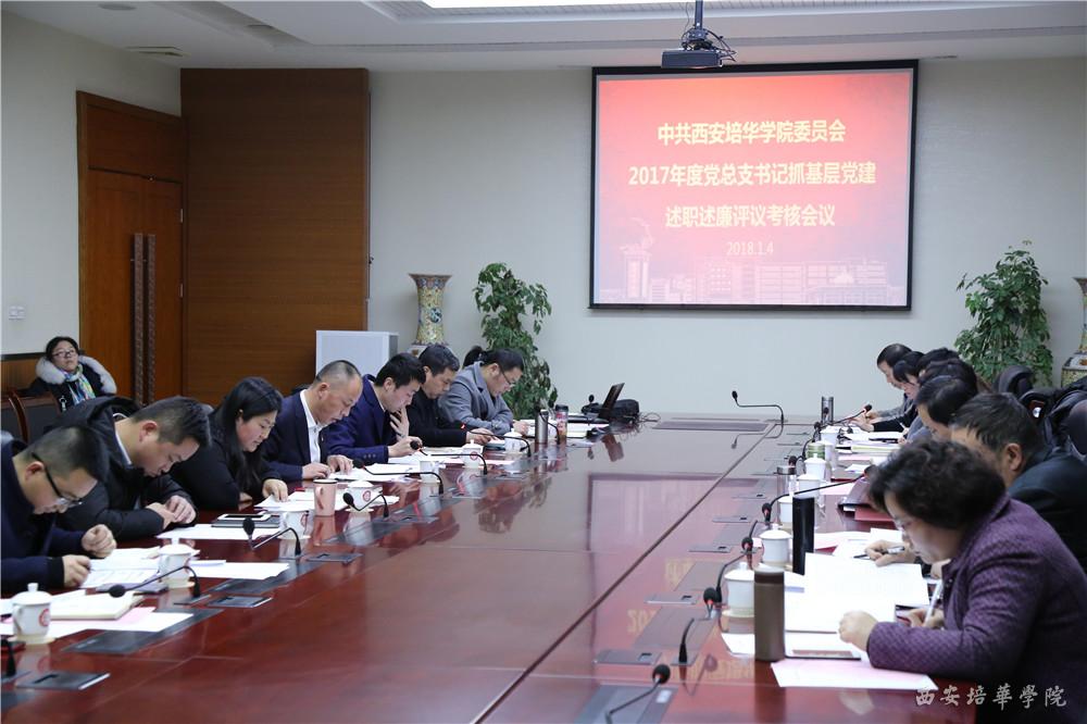 根据省委高教工委《关于开展2017年度高校基层党建述职评议考核工作的通知》(陕高教组〔2017〕210号)要求和学校党委工作部署,1月4日下午,校党委在明德楼第一会议室召开了2017年度党总支书记抓基层党建述职述廉评议考核会议。党委书记胡俊生、校长王拴才、校党委委员、各二级学院党总支书记及党委工作部成员参加会议。会议由党委书记胡俊生主持。