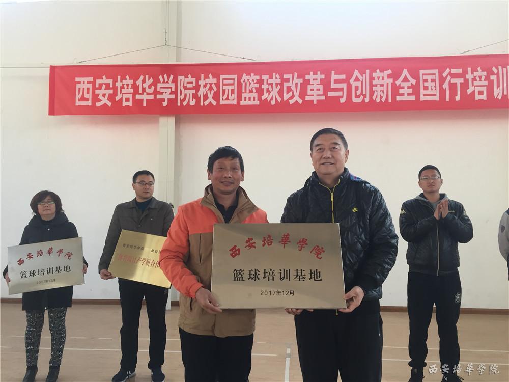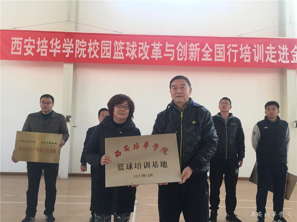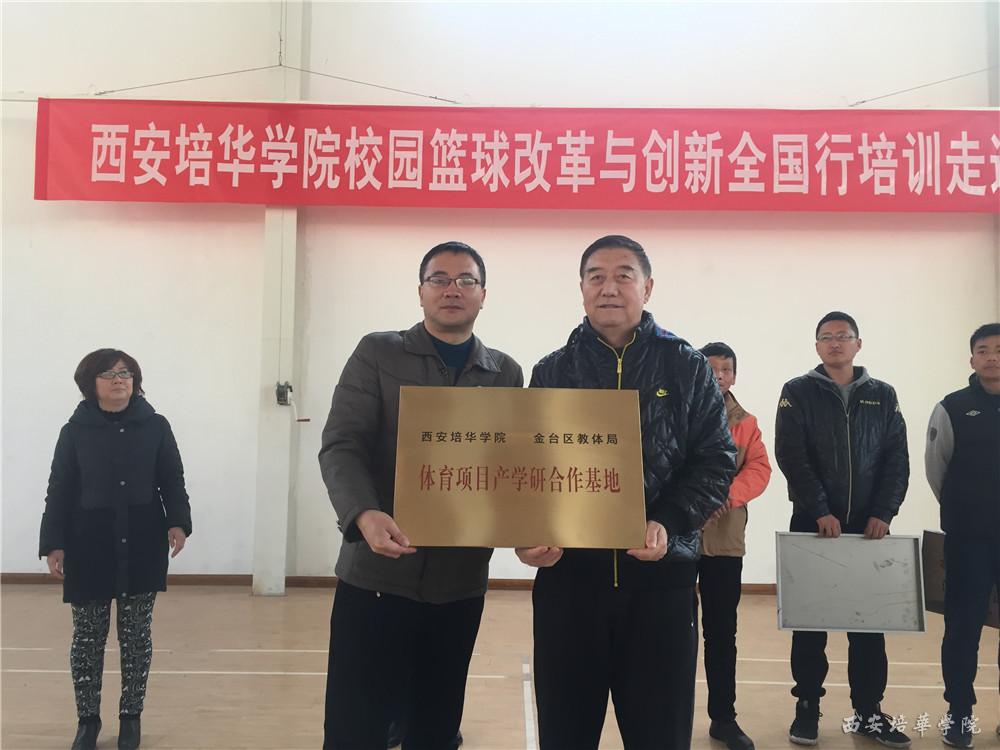 在金台区建立体育项目产学研基地。12月上旬,学校副校长徐国富一行赴金台区,举行“西安培华学院金台区教体局体育项目产学研基地”揭牌仪,同时在金台区新福园中学和西街小学建立“西安培华学院篮球培训基地”。揭牌后,徐国富教授对金台区体育教师和学生代表开展了相关培训活动。