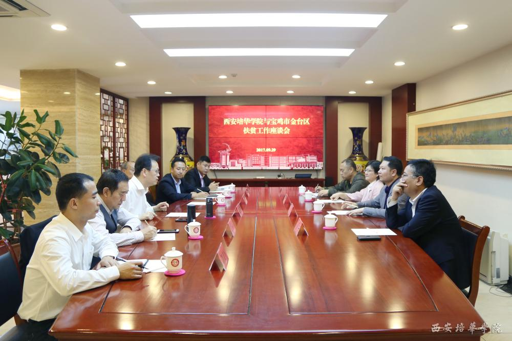 与金台区签订帮扶协议。11月中旬,学校党委书记胡俊生一行赴金台区推进结对帮扶工作,胡书记与金台区副区长袁军平代表双方签订了《西安培华学院与金台区定点帮扶框架协议》,确定了多项帮扶举措。