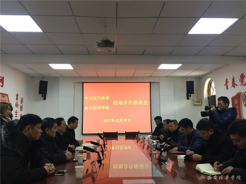 胡俊生书记与李钢部长共同为“西安培华学院大学生‘三观’教育基地”揭牌。仪式后,双方举行了简要座谈,座谈会上,胡俊生书记与李钢部长共同签订了《西安培华学院、中共延川县委关于在梁家河村建立大学生“三观”教育基地的合作协议》。会后,双方人员参观了梁家河知青旧居及文安驿古镇。