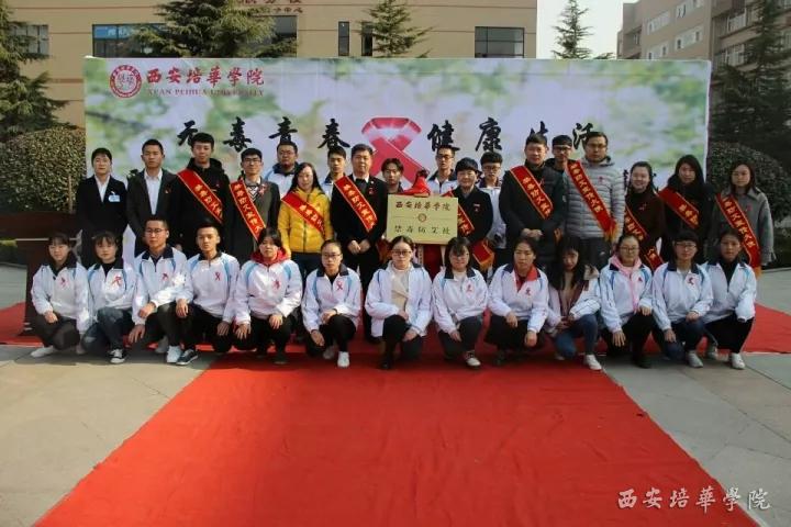 为了进一步加强禁毒与预防艾滋病宣传教育工作,增强学生的禁毒、预防艾滋病意识及自觉抵制不良习气的能力。2017年12月5日星期二中午十二点十分,由共青团西安培华学院委员会主办,我校校医院指导、校红十字会、青年志愿者联合会及各二级学院青年志愿者协会承办的“第二届志愿者文化月开幕式及禁毒防艾宣传周启动仪式”在综合楼西广场顺利召开。