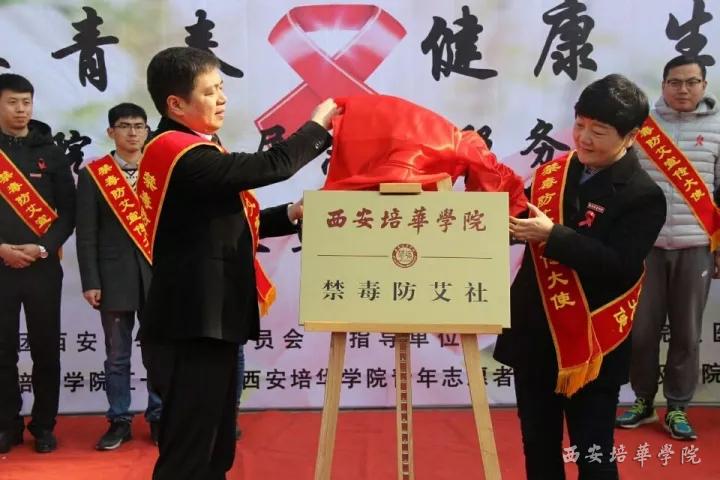 徐莹老师与李旭军院长为“禁毒防艾社”揭牌