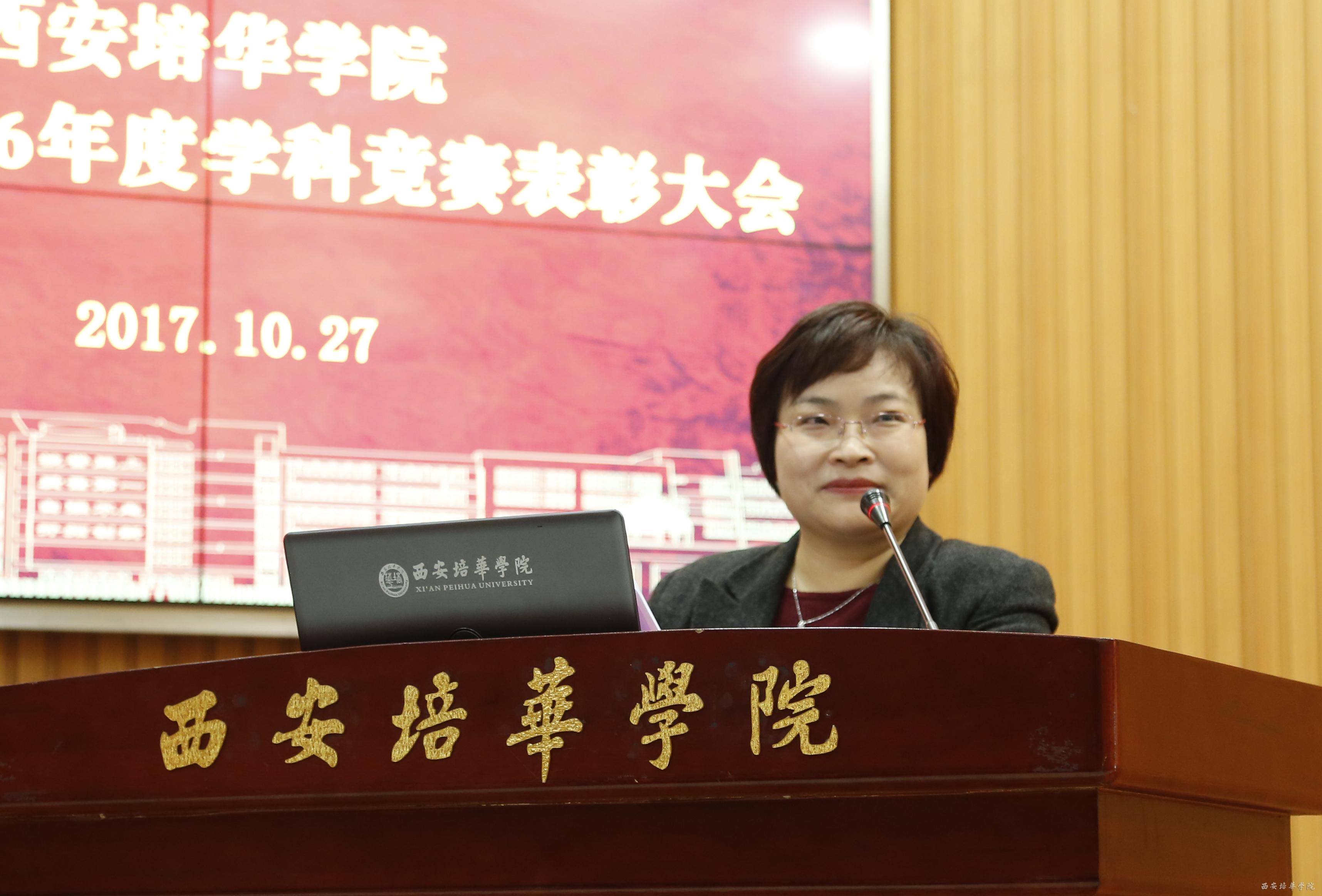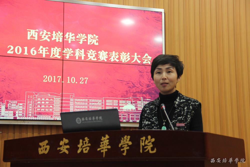 姚文静副校长宣读《西安培华学院关于表彰2016年度学科竞赛获奖学生的通报》