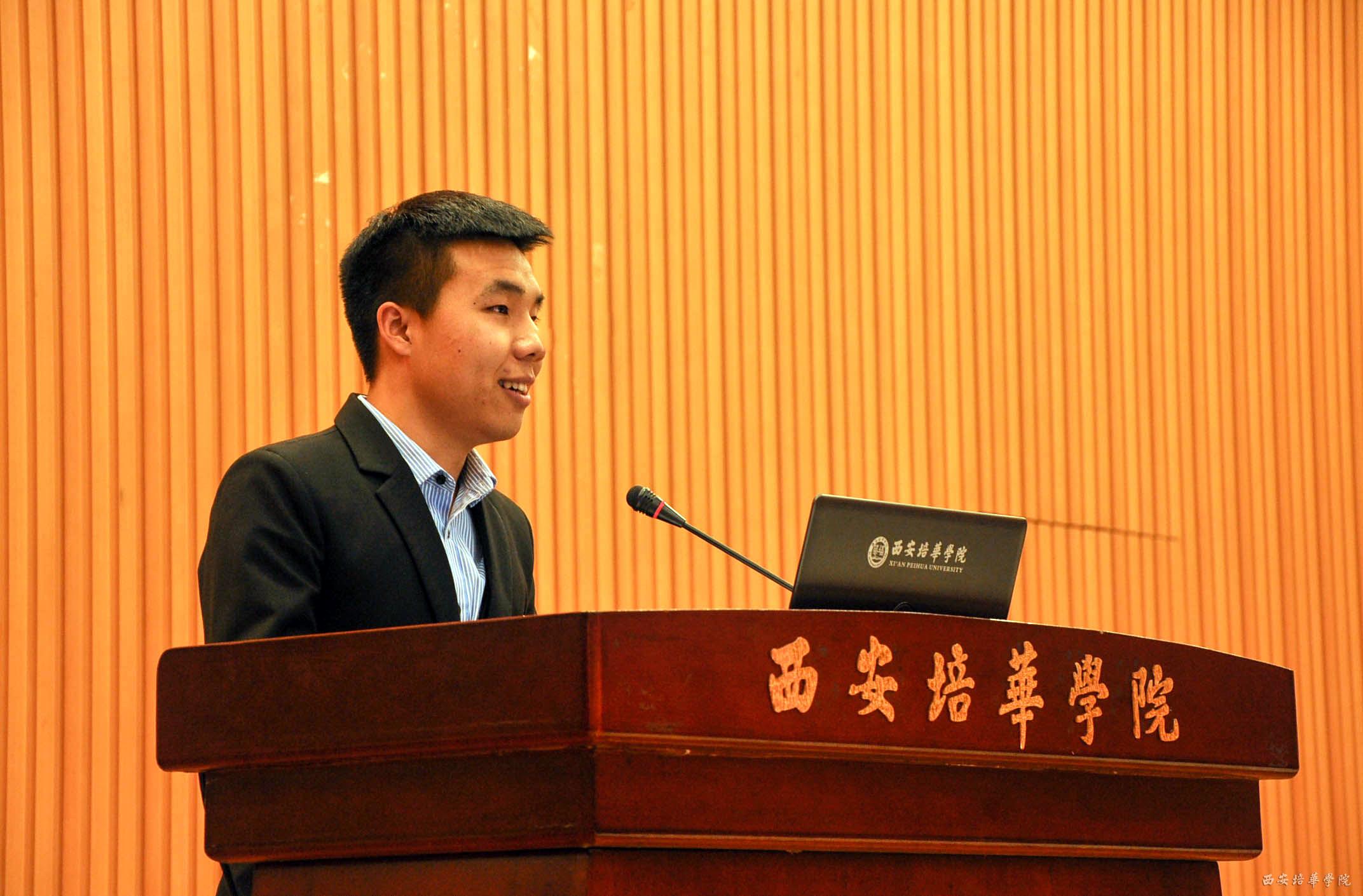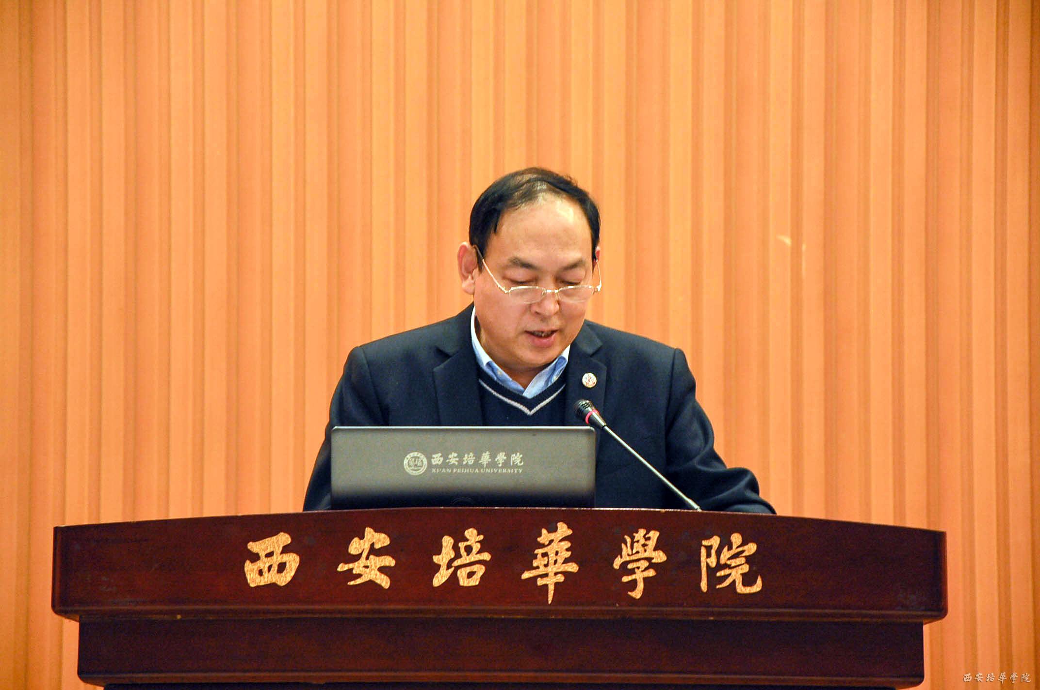 于国亮副校长宣读《西安培华学院关于表彰2015年度学科竞赛获奖学生的通报》