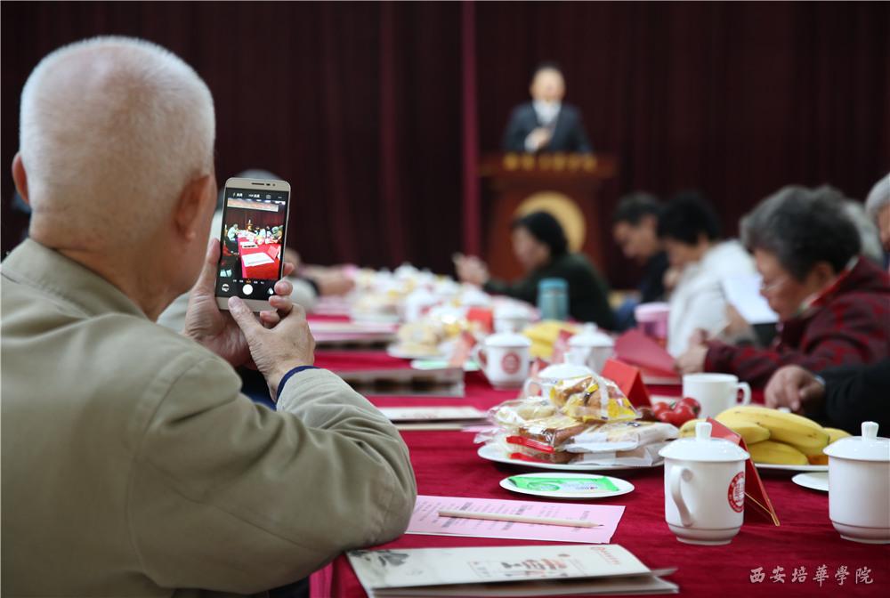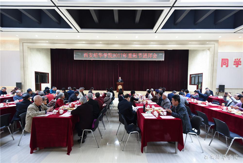 金秋送爽,果实飘香。在全国人民庆祝党的十九大胜利召开的喜庆日子里,一年一度的“敬老节”——九九重阳节又将到来,重阳节是我国著名教育家、西安培华学院创始人姜维之先生的诞辰,同时今年也是培华建校89周年。10月26日上午,周恩来总理的侄女周秉宜、任长安夫妇,朱德元帅外孙刘进,胡乔木之侄胡贻凡、孙雅莉夫妇等革命后代与西安培华学院老领导、各届老校友、学校60岁以上教职工,全体校领导以及师生代表欢聚一堂,在温馨的阳光厅里畅叙友情,共话发展。重阳节团拜会由我校党委副书记、副校长、工会主席徐国富主持。