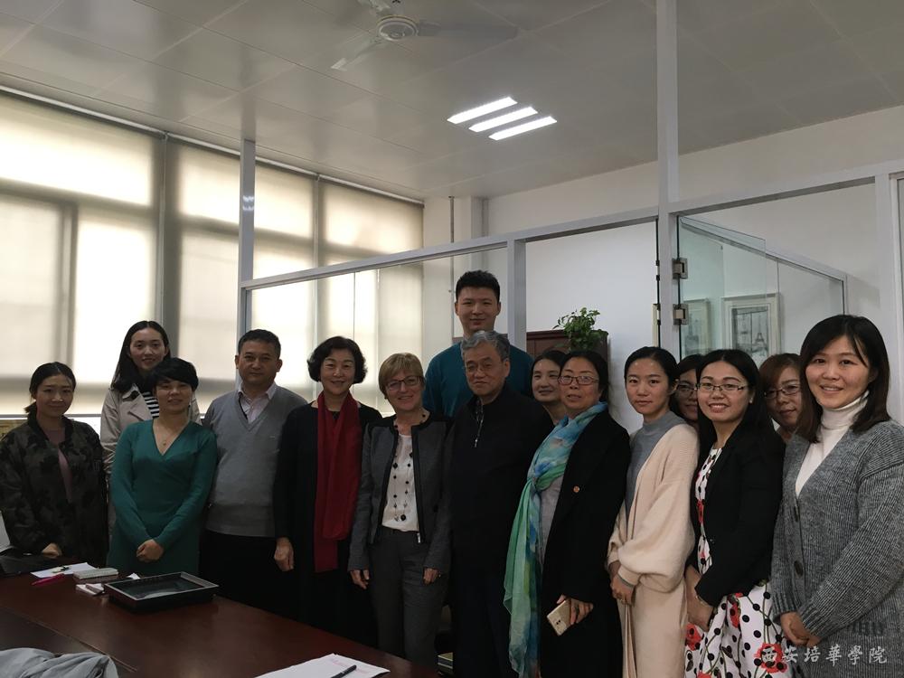 Friese教授将自己的关于职业教育分析的著作赠与我校,刘越莲副校长表示希望我们的教授、教师均可以在德国的著名期刊上发表论文,同时积极参加德国的各类职业院校教育研讨会,同时可以在培华举办国际研讨会。在讲座之后,双方热烈的探讨了职业教育的合作模式。