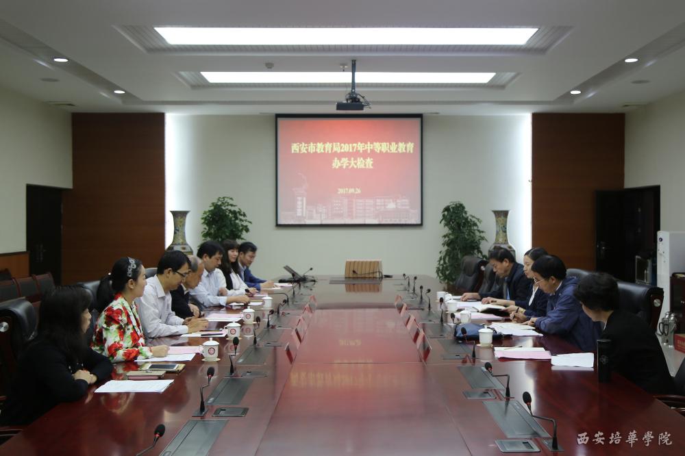 9月26日,西安市教育局2017年中等职业教育办学大检查专家组一行来我校附属中专对办学情况进行全面检查,我校校长王拴才、校长助理秦海锋、开放教育学院院长席小武、副院长宁宇、教学主管杜苗果、学籍主管范力舟、招生就业主管张小龙等参加会议。