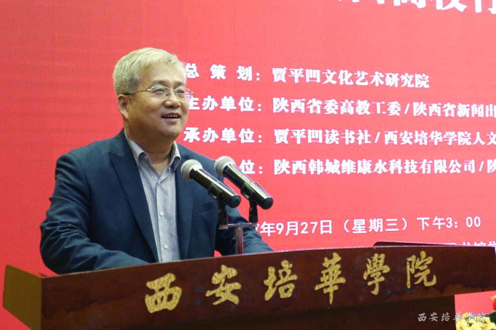 西安培华学院理事长姜波应邀致欢迎词,他表示,举办这样的活动,为学生提供与文学专家面对面交流的机会,非常难得,希望学子们向三位文化大家学习,多读书,读好书,在知识的海洋中汲取营养,得到身心灵的全面提升。中共陕西省委高教工委副书记李智军在讲话中表示,培华学院重视提升学生的文化素养,以文化滋养学生的心灵,在全省堪称典范。陕西省新闻出版广电局公共事业处处长申小毅在讲话中表示,希望学校师生发挥示范引领作用,养成爱读书的好习惯,用实际行动影响身边的人。陕西省人民出版社编审、“陕西文化三人传”策划编辑张孔明在讲话强调了活动举办的意义,并向支持活动举办的单位表示了感谢,希望将全民阅读公益活动常态化进行下去。