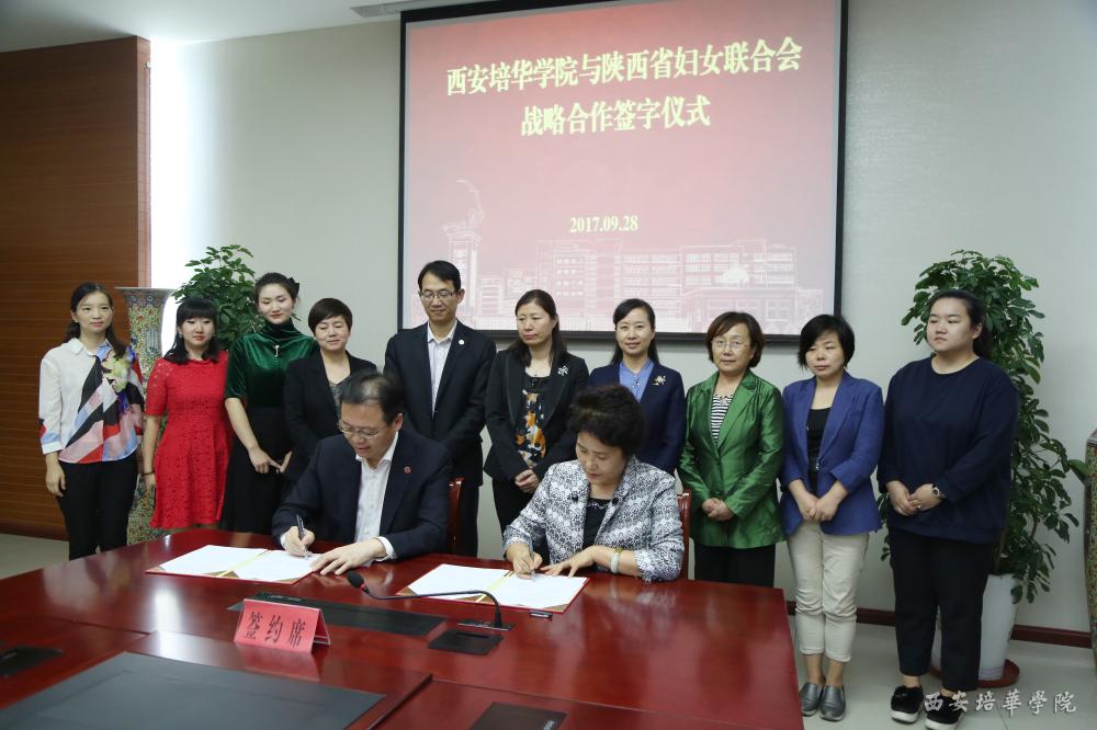 为了推进我校女性特色教育更进一步发展,9月28日下午,学校与陕西省妇女联合会举行战略合作签约仪式。西安培华学院姜波理事长代表学校与陕西省妇女联合会张英副主席在校第一会议室举行签约,并邀请张英副主席一行八人参观了我校具有女性教育特色的教学展览场所。