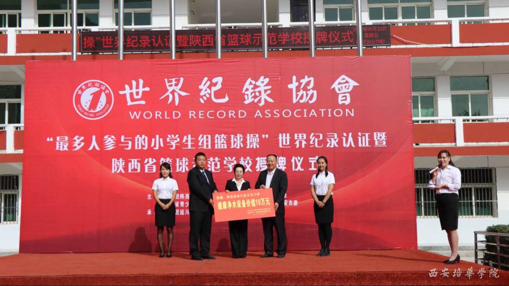 9月22日上午,延川县北关小学“千人篮球操”世界纪录认证暨陕西省篮球示范学校授牌仪式在北关小学举行,这是在我校结对帮扶延川县工作中重点支援北关小学的一项重要举措,学校还为北关小学引进了陕西省青少年发展基金会捐赠项目和环保科技公司饮水设备,切实为北关小学提供支援帮助,解决困难问题。
