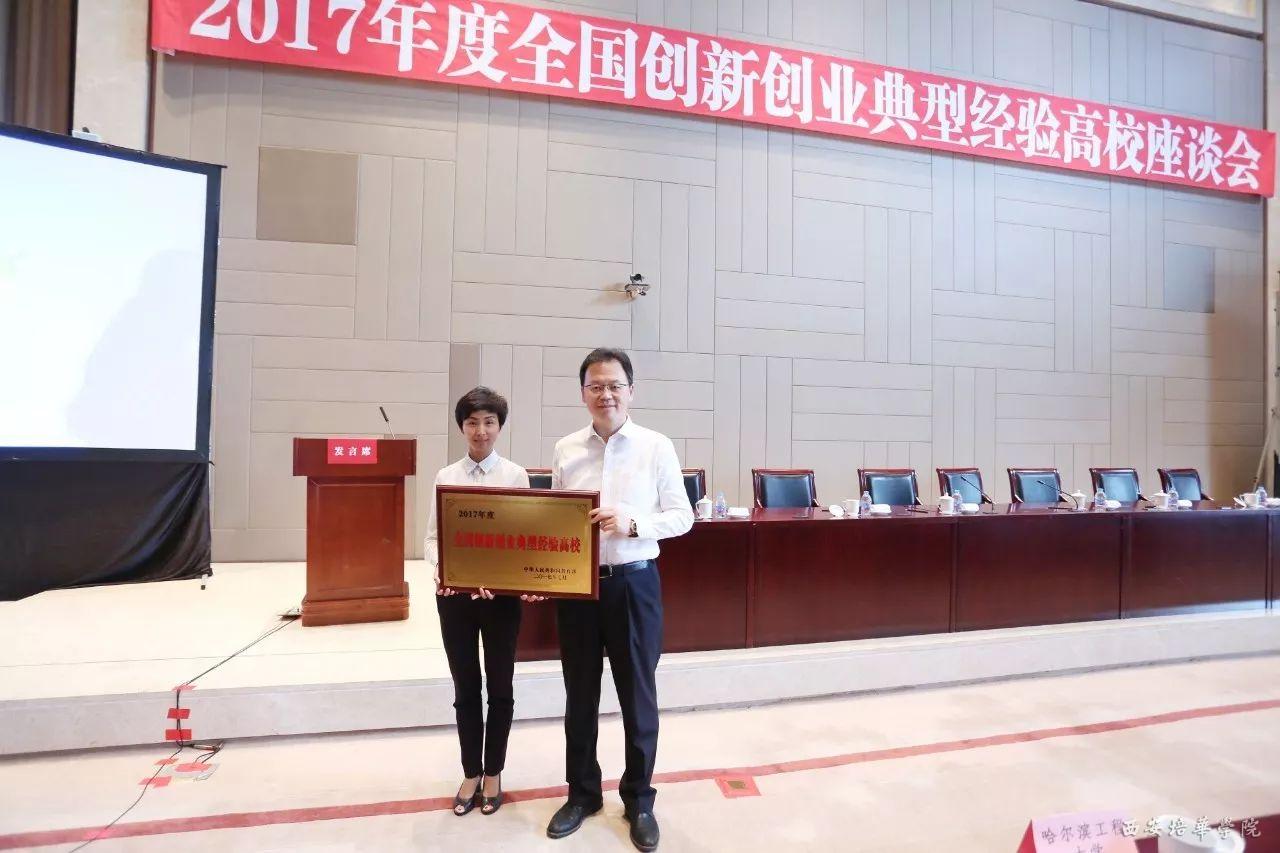 下午,2017年度全国创新创业典型经验高校座谈会在西安举行,全国荣获“2017年度全国创新创业典型经验高校”称号共有50所高校,陕西共有西安交通大学、西安培华学院、西安邮电大学等三所高校荣获“2017年度全国创新创业典型经验高校”称号。教育部副部长林蕙青,高教司、学生司、就业指导中心领导到场祝贺并颁奖。