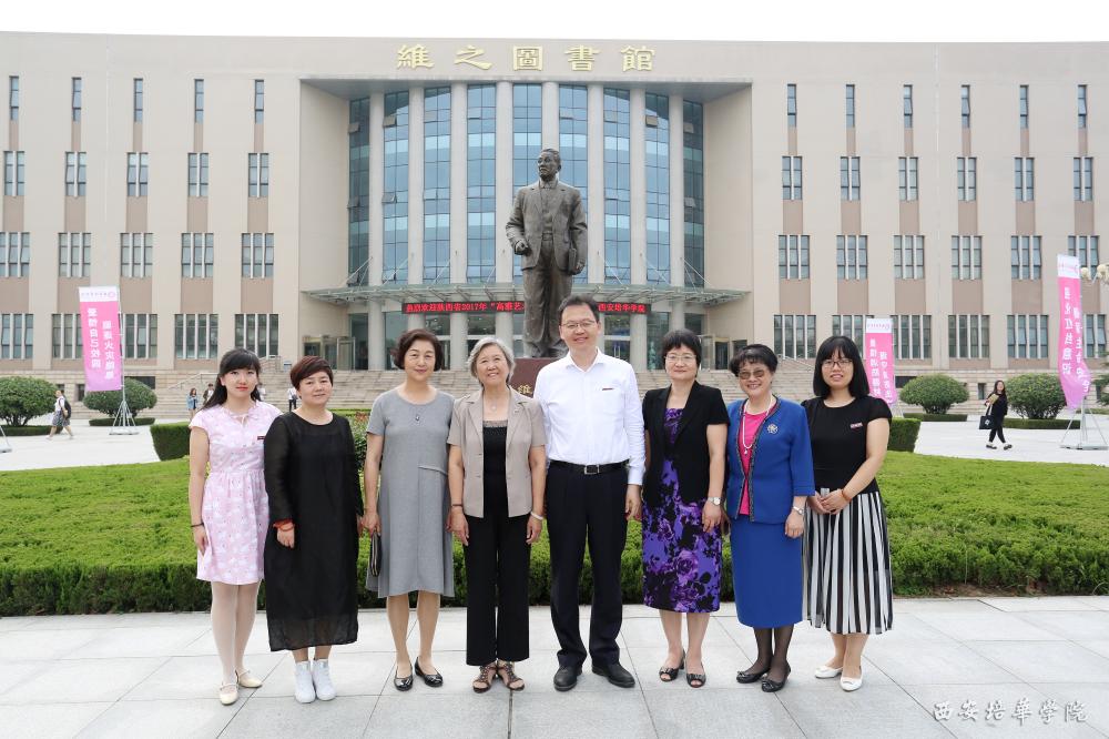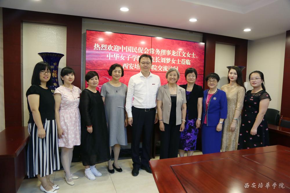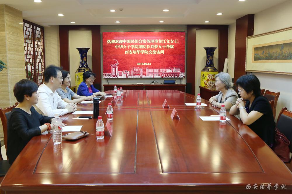 9月14日下午,中国民促会常务理事龙江文女士、中华女子学院副院长刘梦女士来西安培华学院交流访问,学院理事长姜波,副校长刘越莲,女子学院副院长班理,通识教育中心主任、人文学院副院长刘利侠等热情接待了来宾一行,并陪同参观座谈。