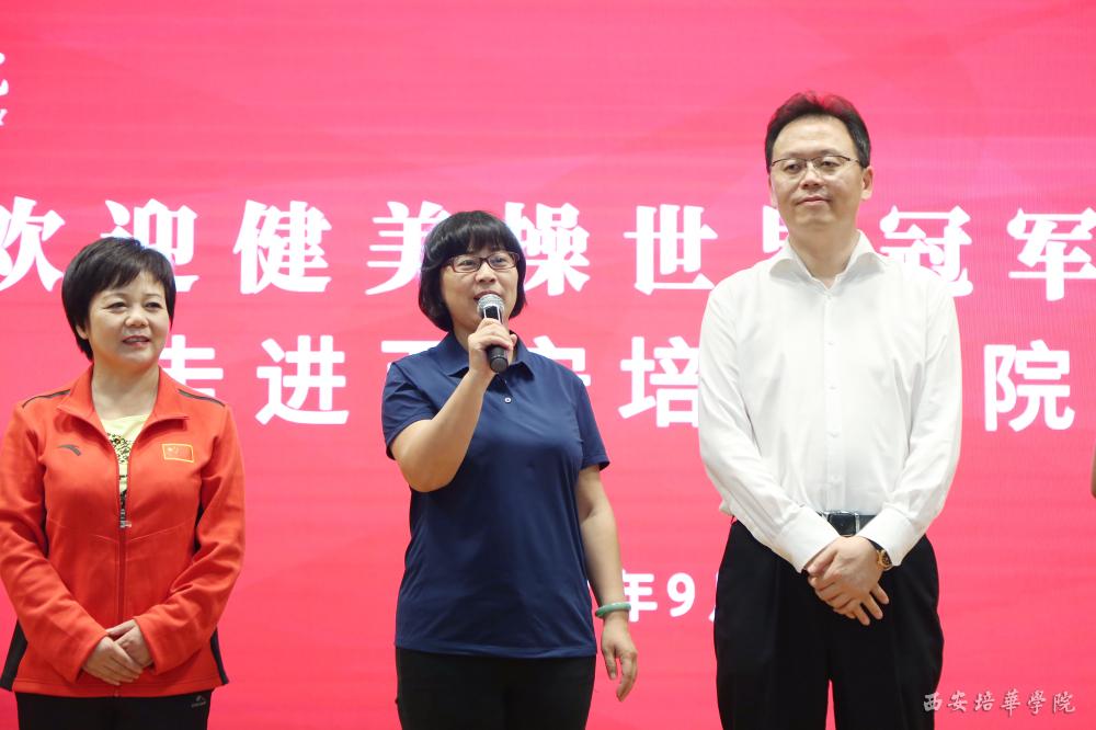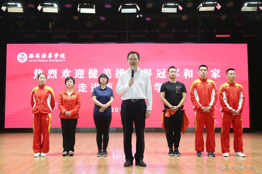 9月17日下午,国家体操运动管理中心发展部健美操项目官员谢会军,中国健美操协会技术科研委员会副主任、西安体育学院教授匡小红携广场舞小王子、央视春晚健身节目编导王广成,及国际健将、六人世界冠军张鹏,五人操、团体世界冠军马超,团体世界冠军赵明、付垚等一行七人来访培华,为千余名学生带来了一场精彩的健美操示范课。