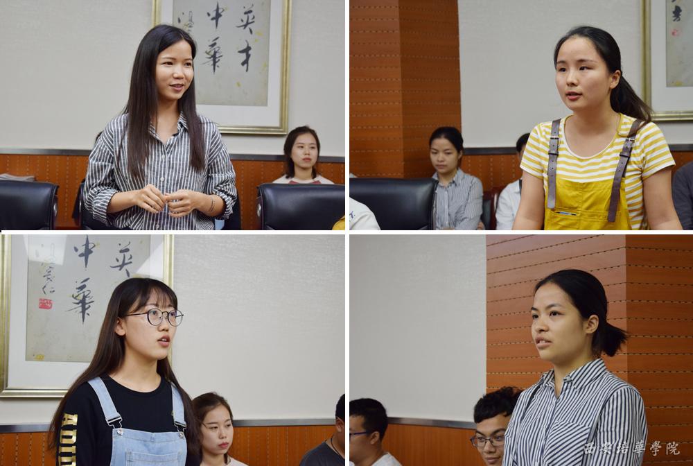 交流生们在会上做了积极发言,他们对我校的评价都很高,都表示很荣幸很高兴来我校交流学习,这里学校的学习氛围很好,学习环境设施都很好齐全,教学质量也很高,教学方式很好,老师和学生都很热情,都积极主动联系学生提供帮助,解决问题。