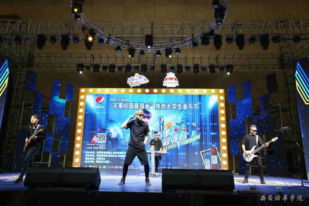 2017“网络文艺进校园”百事校园最强音陕西大学生音乐节总决赛在西安培华学院举行。本次吸引120多所高校上万名大学生的参与,举办10场初赛,35场海选,8场复赛,3场半决赛,1场总决赛,共计57场比赛,为学生提供一展歌喉、交流音乐的平台,我校新闻学专业王博从万名大学生中脱颖而出,参加决赛。