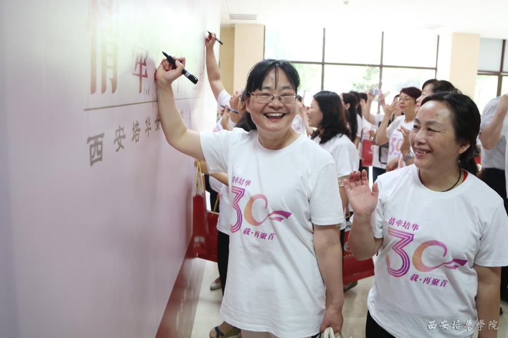 5月29日,1987届的学姐们纷纷从天南海北回来,她们在签名墙上写下自己的名字。我校理事长姜波来到现场,学姐们纷纷与“波哥”聊起了当年在培华的点点滴滴。昔日的同学、舍友、姐妹重新相聚,她们满是激动,她们通过合影的方式表达思念。那一年,还是青葱岁月,如今,她们重返青春,笑靥如花。