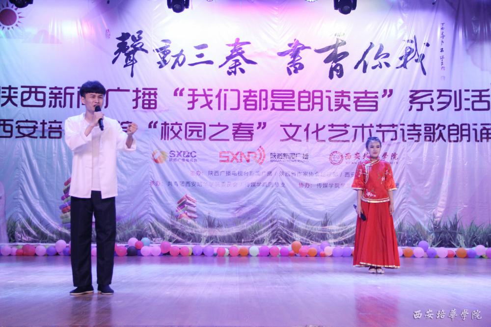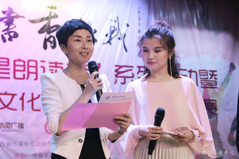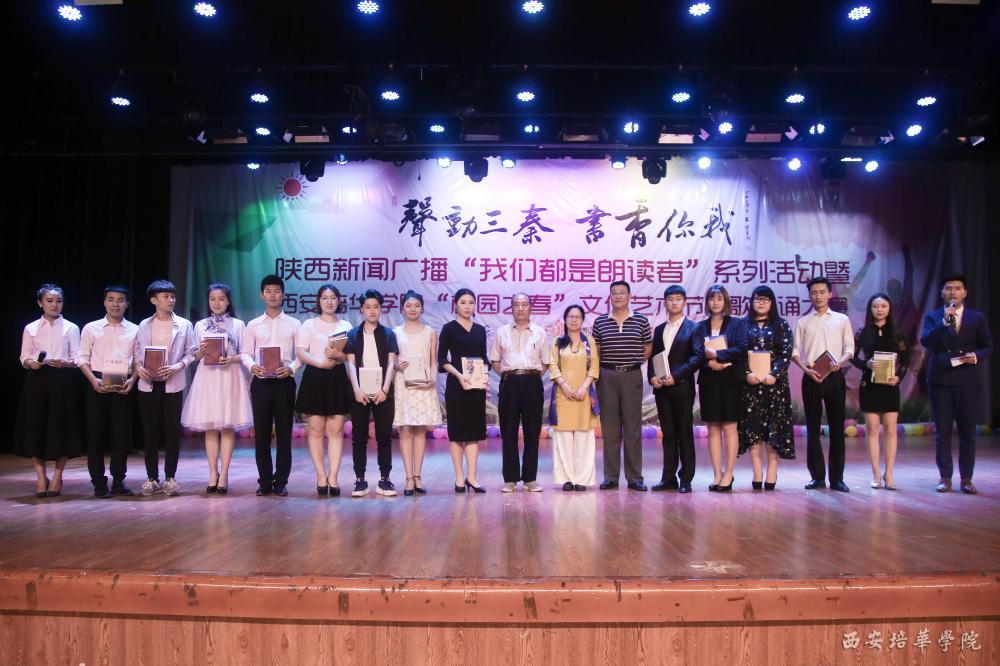 比赛结束后,嘉宾对参赛选手进行了点评,陕西新闻广播主持人为师生进行了精彩的朗诵表演,省作协代表为培华学院图书馆及参赛选手代表赠送书籍。