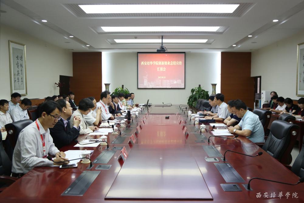西安培华学院理事长姜波代表学校向专家组汇报学校创新创业工作情况。姜波理事长表示,专家组对培华创新创业工作进行全面的检查和指导,是一次检验学校办学水平,指导培华教育教学改革,促进创新创业工作进一步提升的难得机会。他介绍了学校的创办历史和办学情况,并从我校创新创业工作基本情况、创新创业工作的特色和亮点、主要做法、工作成效以及思考与展望等方面进行了汇报。