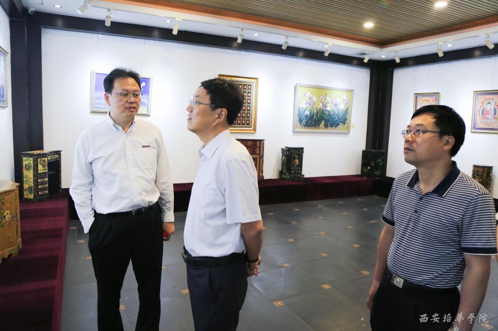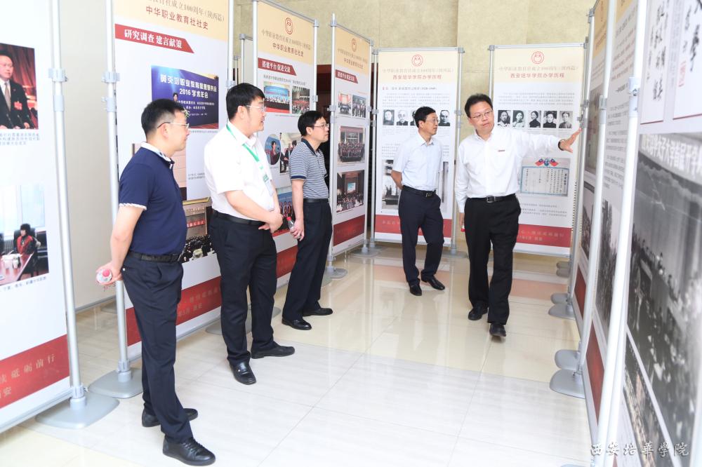 专家组参观考察中华职教社成立100周年图片展和我校创新创业教育图片展
