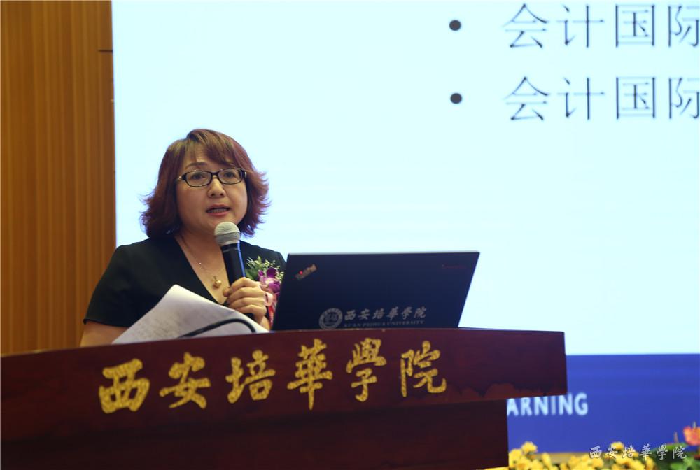 陕西瑞友税务师事务所所长,全球中小企业联盟西北总部副秘书长刘晓娟作题为“经济转型升级大潮下 税务会计的发展和趋势”的主题演讲,她表示,培华是自己母亲的母校,很感谢学校能邀请她来进行分享,在介绍了我国税务会计的现状和发展之后,刘晓娟女士着重将税务会计和教育结合在一起,分析了国内外关于税务会计教育的现状,表明面对当前复杂的经济环境,企业的会计人员应与时俱进,而税务会计人才是社会的稀缺人才,在当前的本科教育中开展税务会计方向是十分必要的。