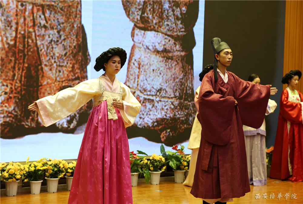 参与本次活动的专家教授为大家带来了一系列精彩讲座,韩国韩南大学金貞鎬教授讲述《通过兴德王的服饰禁制了解新罗时期的服饰》,西安培华学院李媛教授讲述《隋唐盛世的华丽风尚》,韩国韩南大学李美?教授讲述《在隍城洞,龙江洞古墓出土陶俑中出现的统一新罗服饰》,西安培华学院牛菲教授讲述《唐代服饰元素在现代设计中的应用》。
