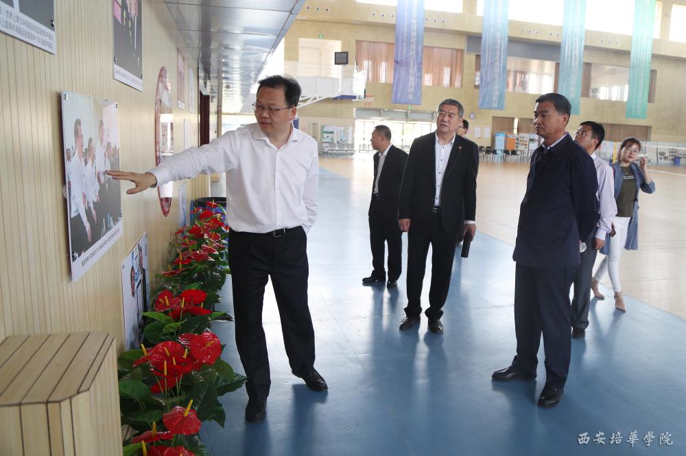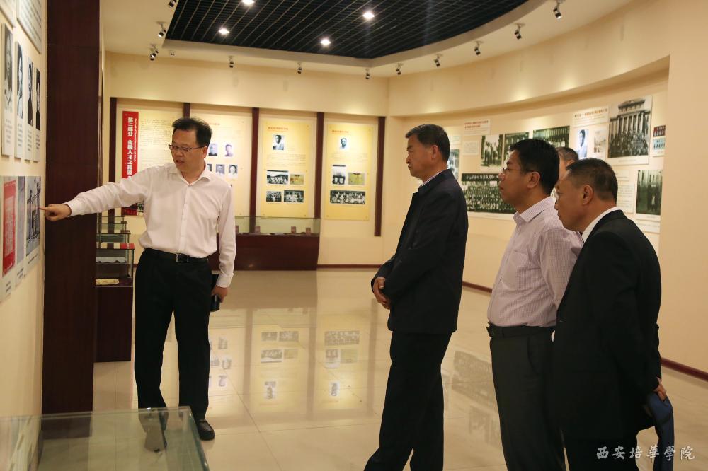 我校理事长姜波向来宾一行详细介绍了学校维之图书馆、校史馆、艺术馆以及学校篮球场、体育馆等体育基础设施建设,郝兴力主任凝神细听,不时询问,对西安培华学院悠久的办学历史、女性特色教育以及文化体育方面取得的成绩给予了高度评价。参观结束后,双方进行座谈。