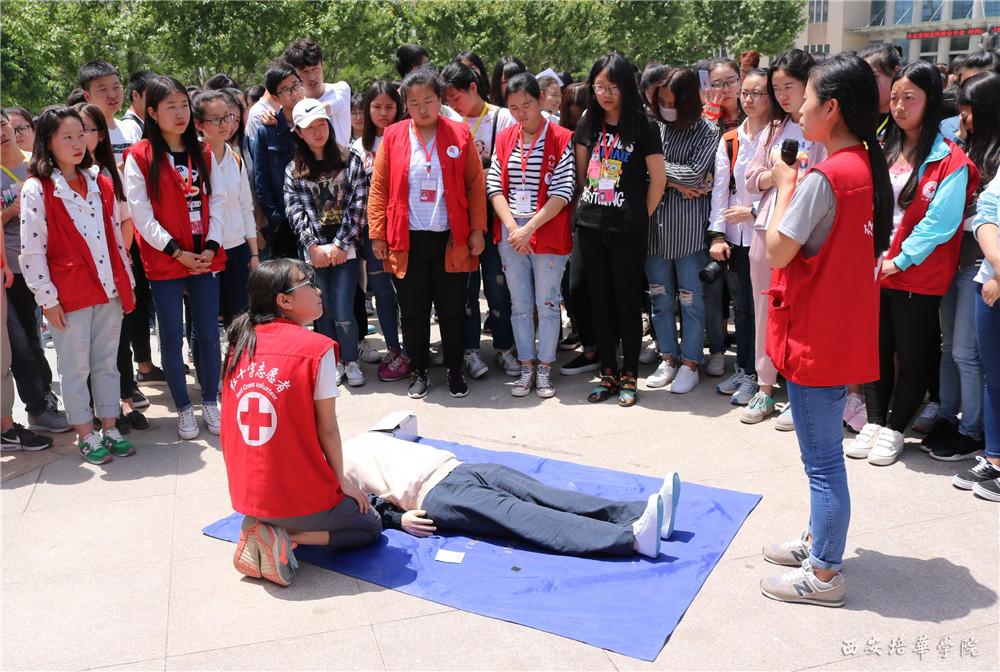 5月8日,在第70个世界红十字日到来之际,西安培华学院红十字会在文化广场举行了“博爱周”活动开幕式暨投放应急救护药箱项目启动仪式。