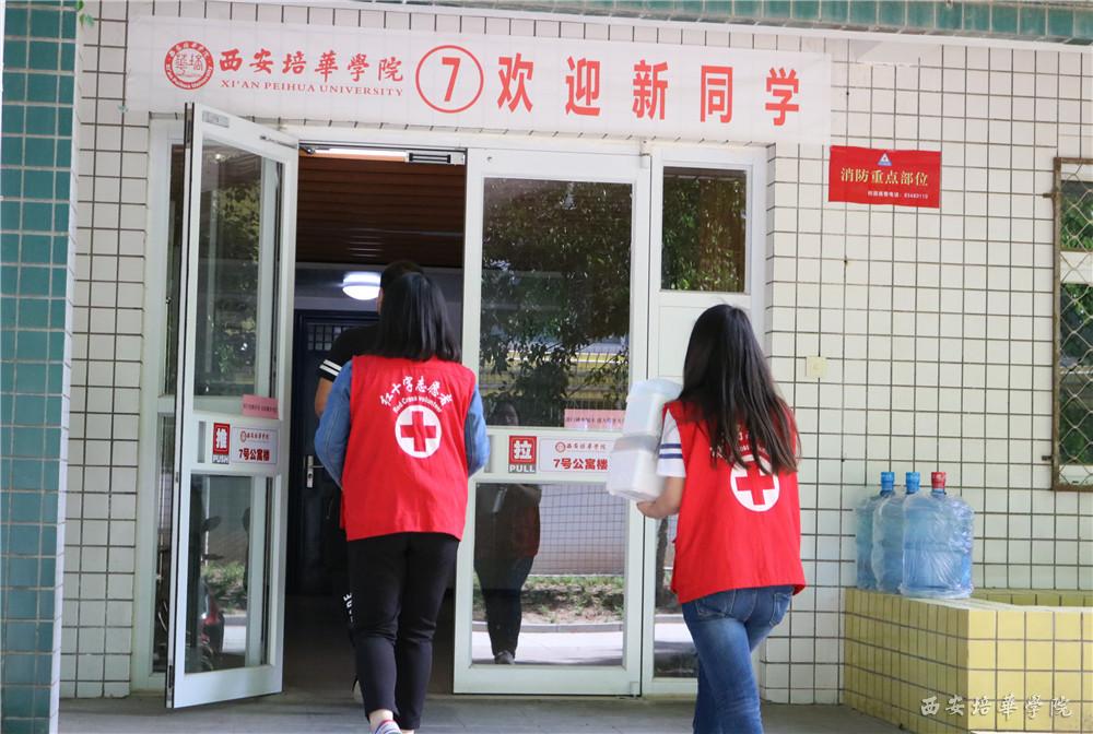 西安培华学院红十字会指导老师杨媛向公寓管理科尤庆莉老师交接应急救护箱
