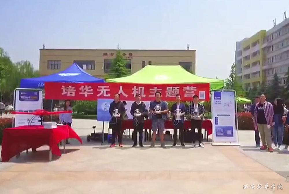 一架架不同性能和造型的无人机,整齐摆放在展台。现场带来了“大疆精灵3”“大疆精灵4”“吾”“御” 等型号无人机,4月27日下午,在学校文化广场,一粟航拍工作室主办第一场培华无人机主题营,并举行了无人机飞行表演。