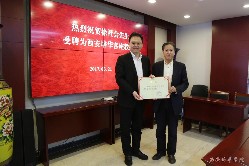 省政协常委、我校姜波理事长为陕西省中药协会会长徐社会颁发学校客座教授聘书