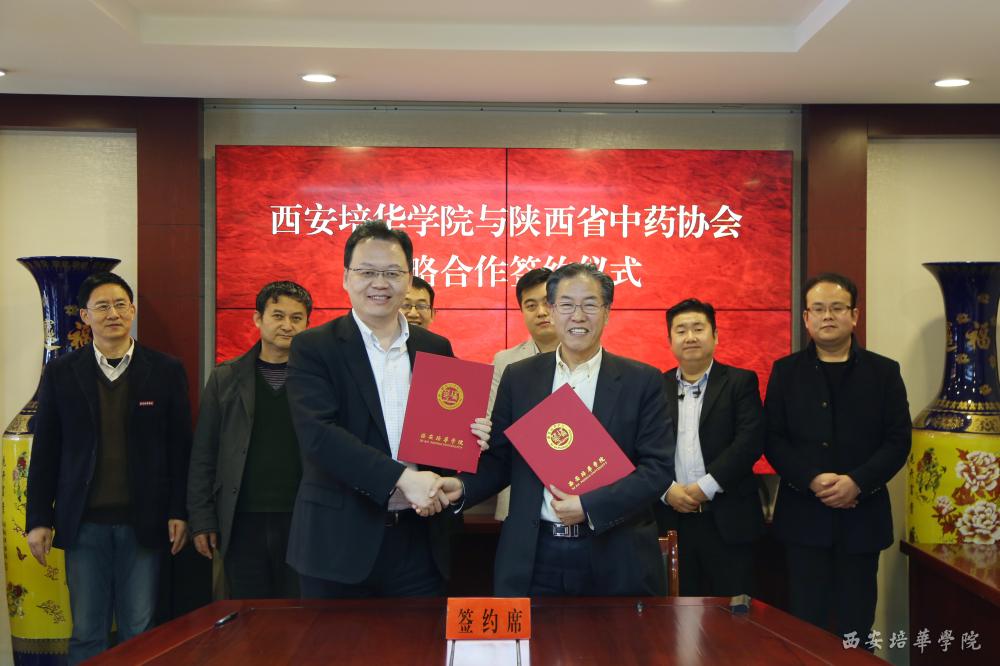 3月21日,陕西省中药协会会长徐社会,陕西省中药协会信息中心总监成宏涛,陕西佛缘中药产业集团副总裁徐景源,陕西乐养大健康产业服务管理公司总经理金修一行来培华学院交流访问,双方进行会谈并签署了战略合作协议。