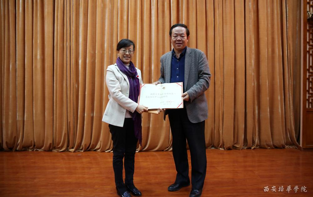 我校校长王拴才向王雪博士颁发“客座教授”聘书