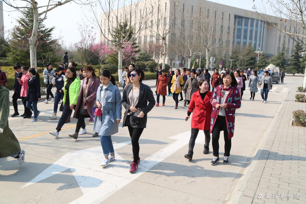 沐浴在午后明媚的阳光中,老师们从维之图书馆门前出发,围绕学校南门、东门、北门绕行,大家精神抖擞,井然有序地走在校园里,大家一边健步行走,一边寻觅着早春的气息,一路洒满了大家的欢声笑语。