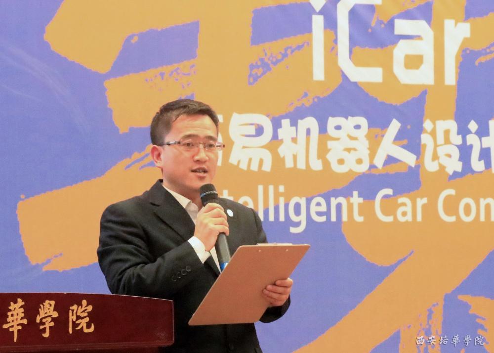 招生与就业指导中心主任鲍伟、学生服务中心副主任徐莹、新闻中心副主任柳雨、盘古创新创业学院教研室主任吴军政、中兴电信学院院长程国建、中兴电信学院党总支书记史立军、中兴电信实验教学中心主任陈实培、乐博士机器人(中国)赛事活动策划经理邱萌,以及中兴电信学院教师代表等出席开幕式。西安培华学院创客中心主任、中兴电信学院程国建院长致辞,肯定了同学们近月来在智能小车设计制作过程中付出的努力和收获,勉励同学们不断挑战自我,取得更好成绩,同时动员同学们积极参与形式多样的创新实践活动提升专业应用能力。
