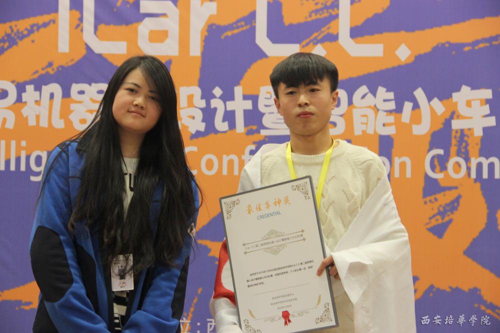 最终,由答凯艳老师带队,学生刘震、杨雪、吕咏品、冀祥组成的“对不队”队以团队积分第一名的身份独揽冠军宝座;由邢静老师带队,李康、任静怡、董娟娟、郭梦杰组成的Boom sha car la car队,由高方绮老师带队,范子龙、胡泰康、张彤、赖敏元、师帅、谢东组成的Megatron队,由张亚梅老师带队,郝胜利、李富洲、李皓、靳宇博、刘鹏、李宝能组成的H·icar队共获亚军;由殷娟娟老师带队,曹依梦、黄常、张敏静、董巷组成的SU7队,由安嘉黛老师带队,陈昕阳、雷浩哲、杨涛、侯磊波组成的T-π队,由王京老师带队,蔡李斌、唐源、李祥、吕叶、赵沛沛组成的Hello Car队,由黄玉蕾老师带队,张杰、卜文强、姚宇轩、艾旭凯组成的Caterpillar Team队共获季军。此外,Boom sha car la car队经过现场投票环节,以独特个性的智能小车外观设计,高票当选“最佳设计奖”;H·icar队的队员李富洲同学,以稳定的智能小车性能,获得全场个人积分最高分,荣获“最佳车神奖”。