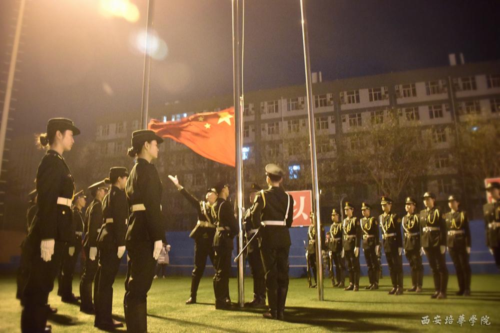 我校国旗护卫队在体育场举行了升旗仪式,激发学生爱国热情