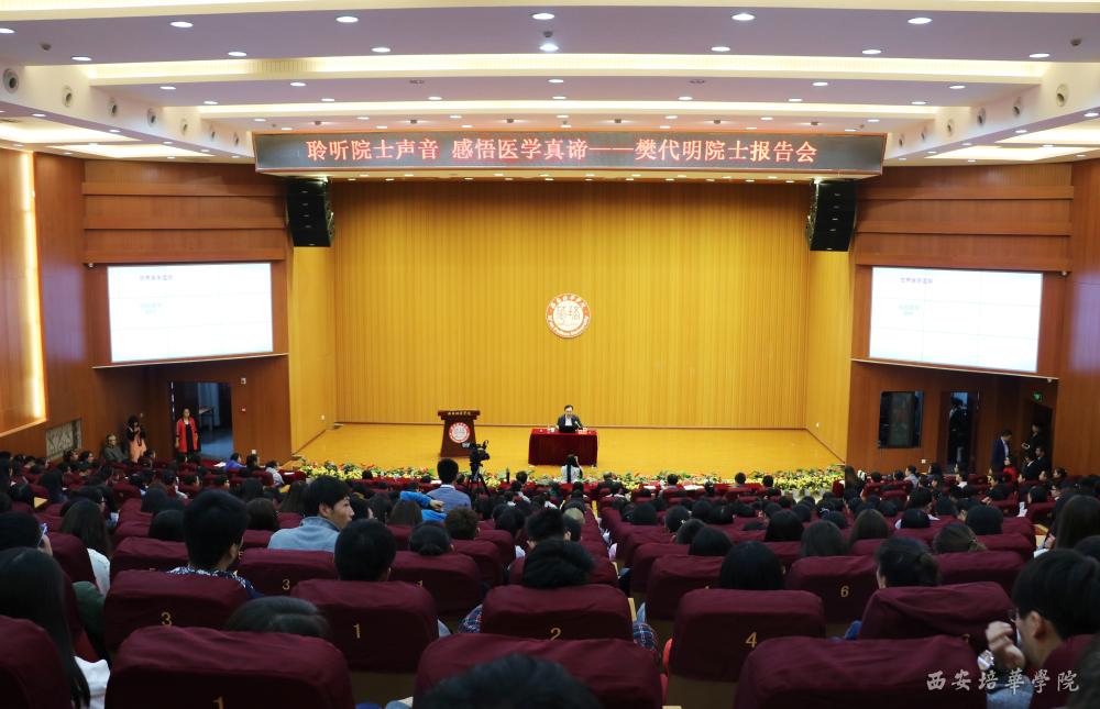 10月23日下午,中国工程院副院长樊代明院士报告会在我校维之图书馆报告厅举行。我校理事长姜波,校长王拴才,副校长于国亮等校领导与500余名师生代表聆听了报告。